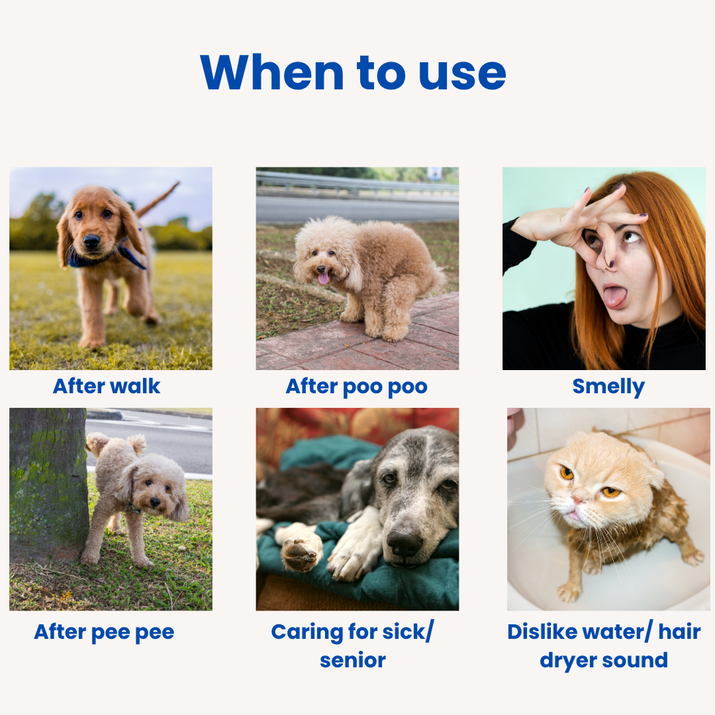 Answer 3: This product is ideal for quick clean-ups and refreshing your pet in between baths. While it does clean your pet's coat and helps eliminate odors, it is recommended to bathe your pet regularly to maintain overall hygiene. Our customers use this product daily to keep their pets clean and was able to extend the shower periods from weekly to fortnightly because their dogs don't smell . Plus, it's very easy to use as a daily after-walks routine.